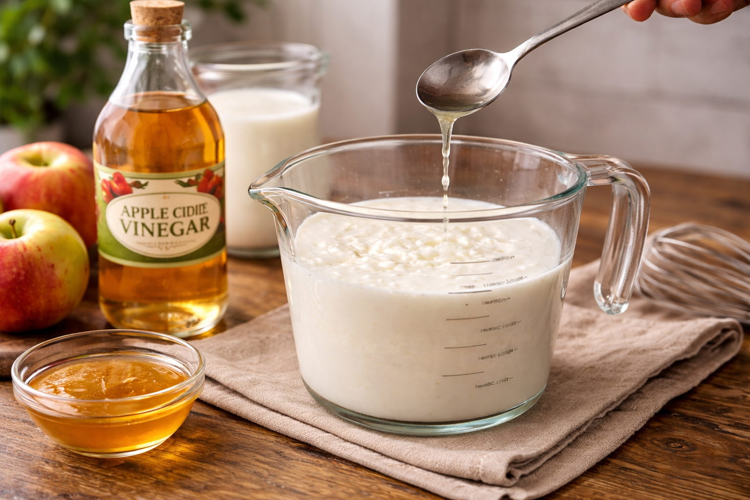 Method 3 — Apple Cider Vinegar (For Rustic or Whole-Grain Recipes)