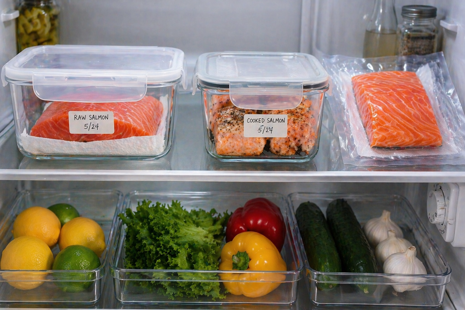 The short answer: raw fresh salmon lasts 1–2 days in the fridge; cooked salmon lasts 3–4 days. But that summary hides important nuances — the fridge temperature you’re actually running (not the temperature you assume), how the salmon was handled before you bought it, what bacterial and enzymatic activity begins the moment a fish leaves cold water, and the meaningful difference between vacuum-sealed and unwrapped storage.